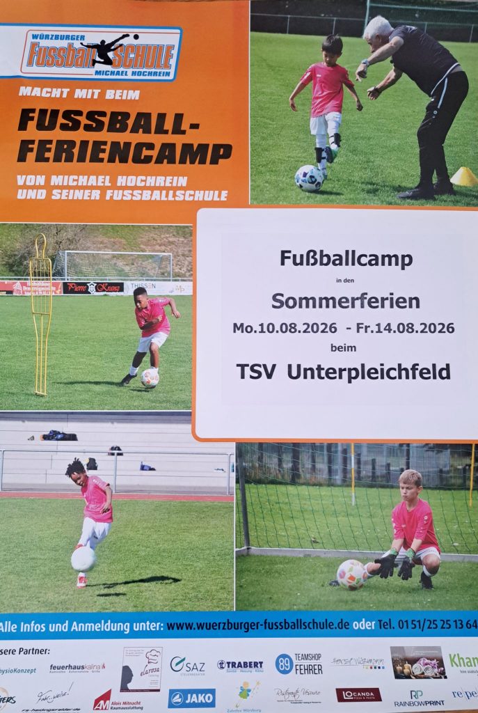 Die Fußball-Jugendabteilung des TSV Unterpleichfeld und des VfR Burggrumbach richtet wie in den vergangenen Jahren ihr traditionelles Jugendfußball-Turnier aus. Hierzu möchten wir euch recht herzlich einladen. Das Turnier findet in den Altersklassen U7 bis U19 statt.