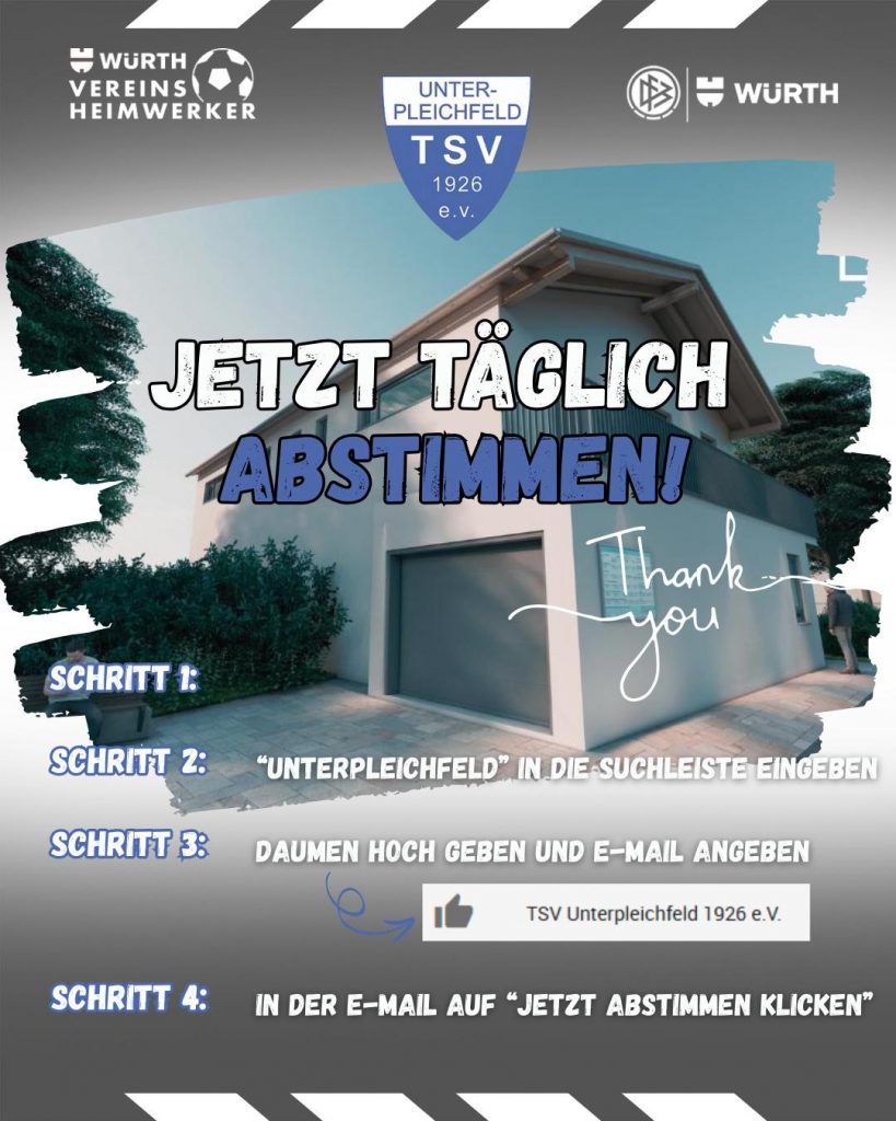 Der TSV Unterpleichfeld ist Teil einer bundesweiten Aktion für den Amateursport: WÜRTH Vereinsheimwerker 2025, einer gemeinsamen Initiative des Deutschen Fußball-Bunds (DFB) und der Adolf Würth GmbH & Co. KG.